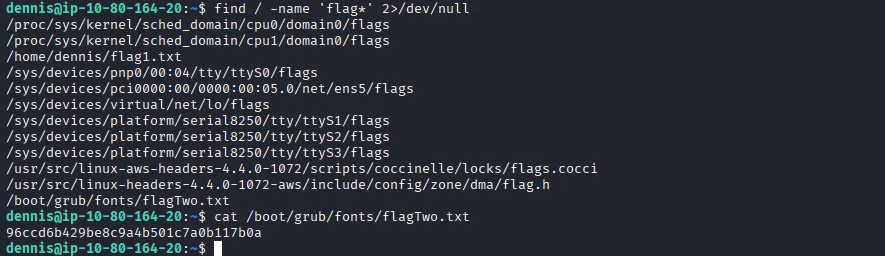 I use the find command to look for other flags embedded and sure enough flag number two comes up.