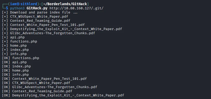 Time to enumerate git properly.First I download the git log from the site using the url http://10.80.160.127/.git/logs/HEAD
