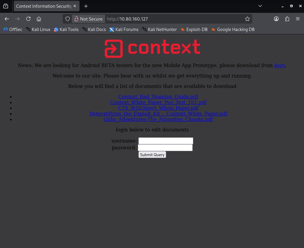 First point I check is the webserver which shows a webapp. Be sure to download to download the APK file which we will use later on.