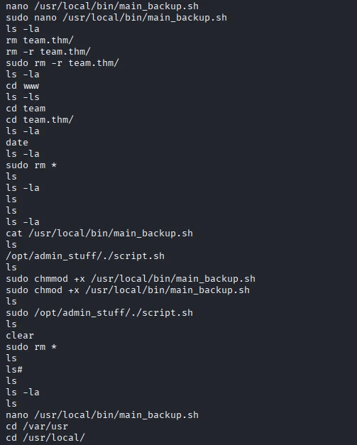 Scrolling through bash history ,one file stands out in particular /usr/local/bin/main_backup.sh and also mention of crontabs suggesting a cronjob is running.