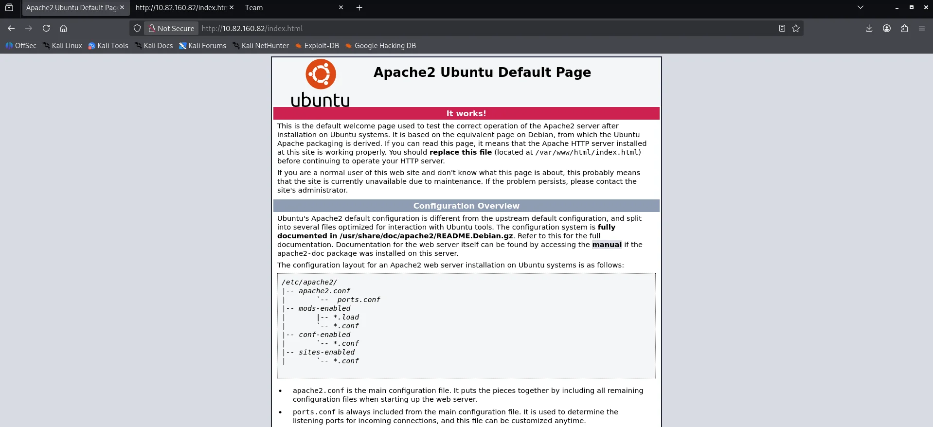 Opening the webserver we get an apache default page